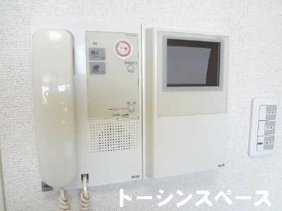 TVモニター付オートロック、外から玄関が見えない中廊下設計で防犯面も安心設計。